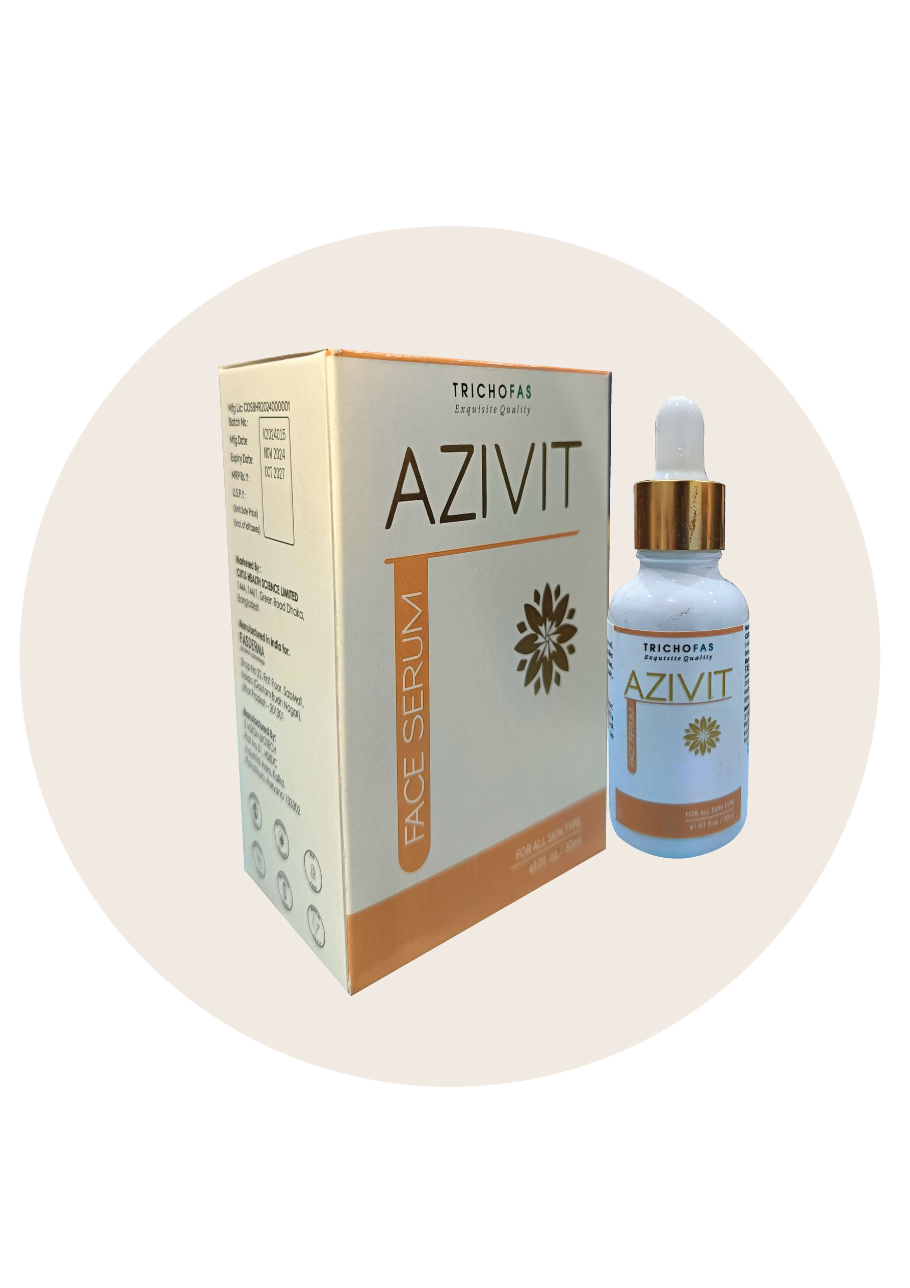 Trichofas® Azivit Face Serum An advanced glow-boosting formula with Vitamin C, Glutathione, and Hyaluronic Acid—designed to brighten dull skin, reduce pigmentation, and deeply hydrate. Perfect for all skin types seeking even tone and radiant texture.