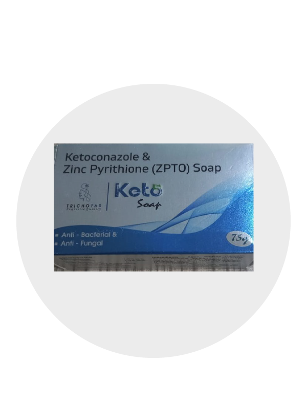 Trichofas Keto Soap is a medicated cleansing bar scientifically formulated to treat and prevent fungal and bacterial skin infections, including dandruff, ringworm, and seborrheic dermatitis.